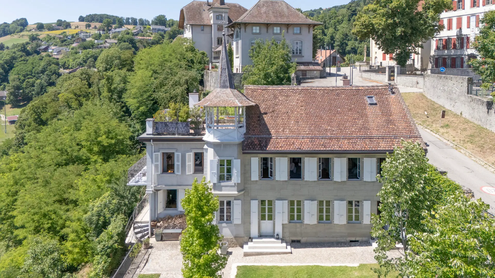 Située dans les hauteurs pittoresques de Moudon, dans le canton de Vaud, cette élégante maison de maître entièrement rénovée offre un cadre de vie exceptionnel au coeur d’un environnement verdoyant et historique. La propriété surplombe la ville haute, offrant une vue dégagée sur la verdoyante vallée de la Broye, les alpes, la rivière et les collines environnantes.